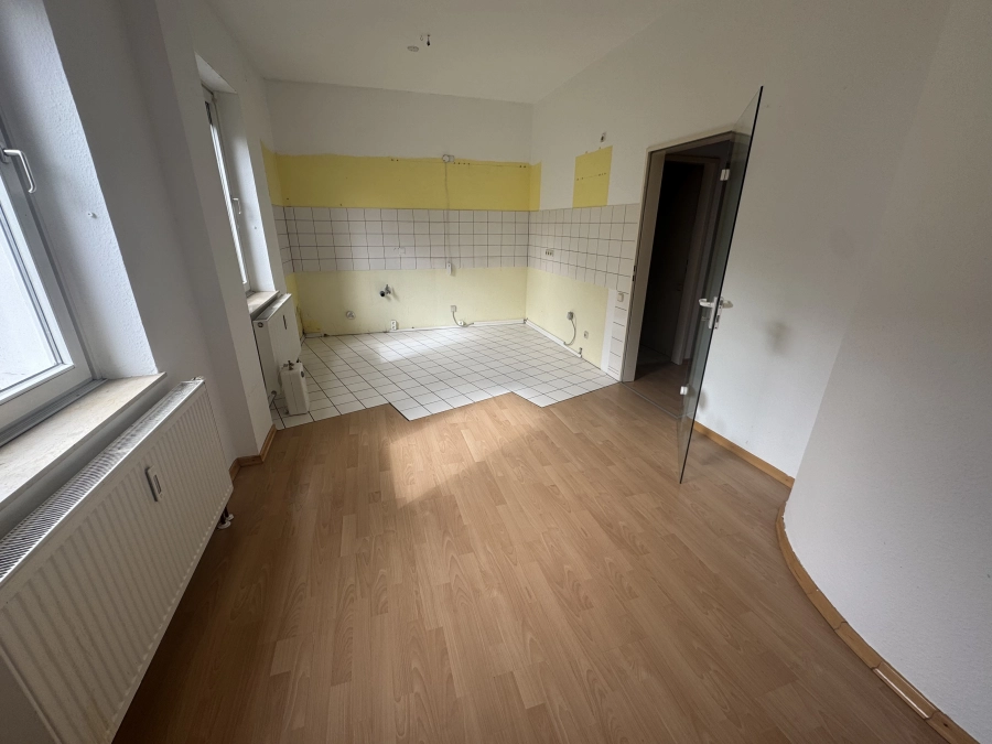 Das Erdgeschoss empfängt Sie mit einem großzügigen Wohnbereich, der mit großen Fenstern viel Tageslicht bietet. Hier können Sie entspannte Stunden mit Ihrer Familie genießen. Die angrenzende Küche bietet ausreichend Platz.