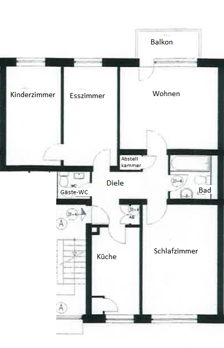 4 gut geschnittene Zimmer